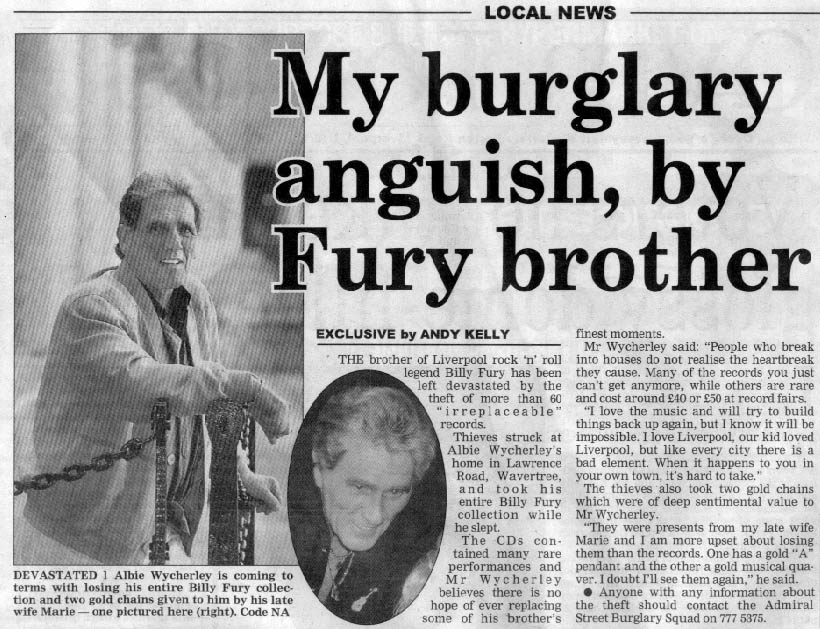 Albie Wycherley's Home Burglarised
