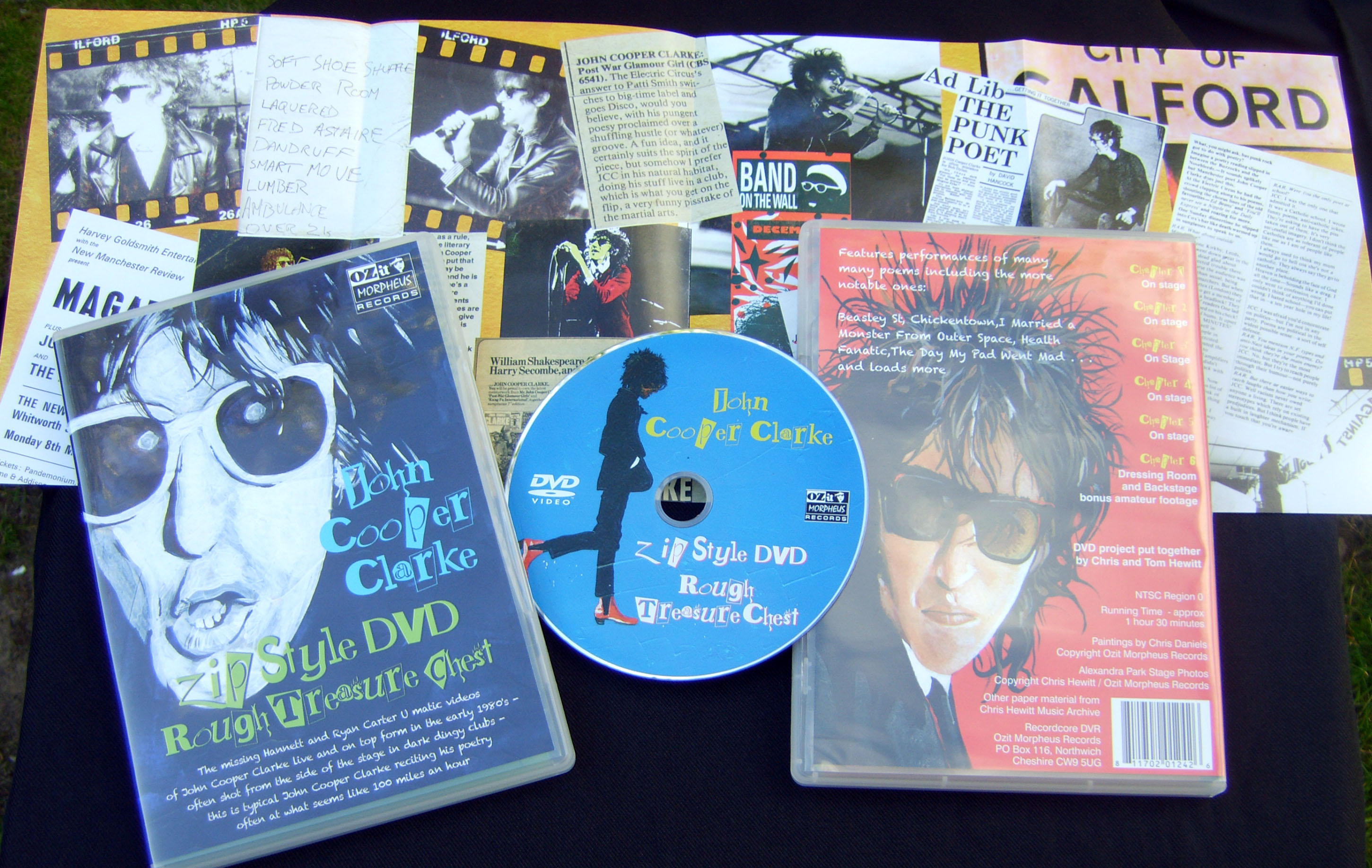 The only DVD ever totally dedicated to John Cooper Clarke. The missing Hannett and Ryan Carter films of the early days of John Cooper Clarke's career. This is the classic John Cooper Clarke filmed in the dingy punk rock clubs of the late 70s and early 80s. Punk poetry recited at 100 miles an hour. Five DVD chapters of poems and a short chapter of backstage and dressing room footage. Features performances of many poems, including the more notable ones: Beasley St, Chickentown, I Married A Monster From Outer Space, Health Fanatic, The Day My Pad Went Mad and loads more. Clarke has opened for such acts as the Sex Pistols, The Fall, Joy Division, Buzzcocks, Siouxsie and the Banshees, Elvis Costello and New Order (at their May 1984 Music For Miners benefit concert at London's Royal Festival Hall). His set is characterized by lively, rapid-fire renditions of his poems, usually performed a cappella style. He opened for Be-Bop Deluxe on their 1977 UK tour and later for Rockpile on their 1979 US tour. In the late 1970s and early 1980s, Clarke enjoyed some chart success in the UK with the single "Gimmix! Play Loud" and subsequent album “Snap, Crackle & Bop”. In 1979 he applied to join the Actors Union Equity, but as there was already a member named John Cooper Clarke, he joined as Lenny Siberia instead.
